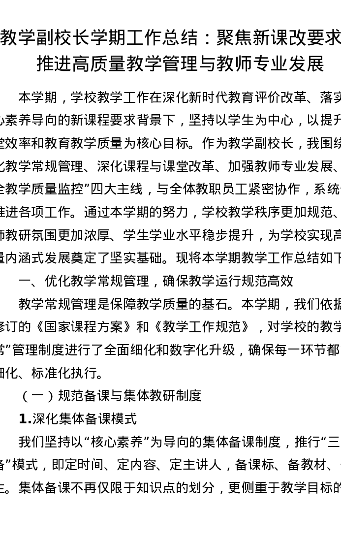 教学副校长学期工作总结:聚焦新课改要求,推进高质量教学管理与教师专业发展