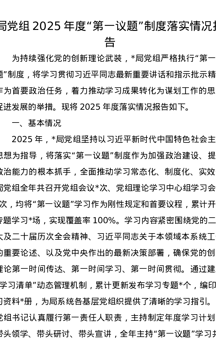 局党组2025年度“第一议题”制度落实情况报告