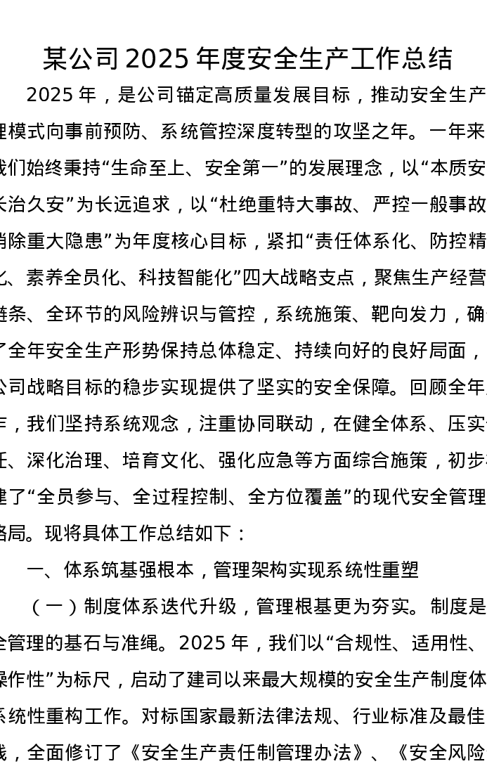 某公司2025年度安全生产工作总结