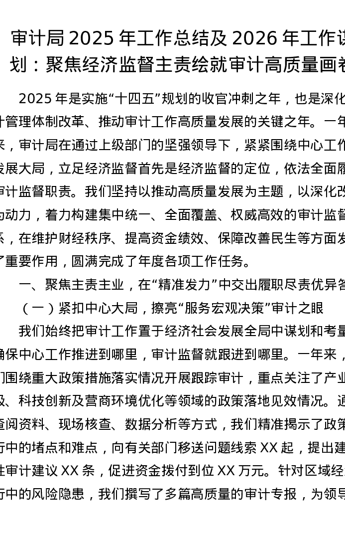 审计局2025年工作总结及2026年工作谋划:聚焦经济监督主责 绘就审计高质量画卷