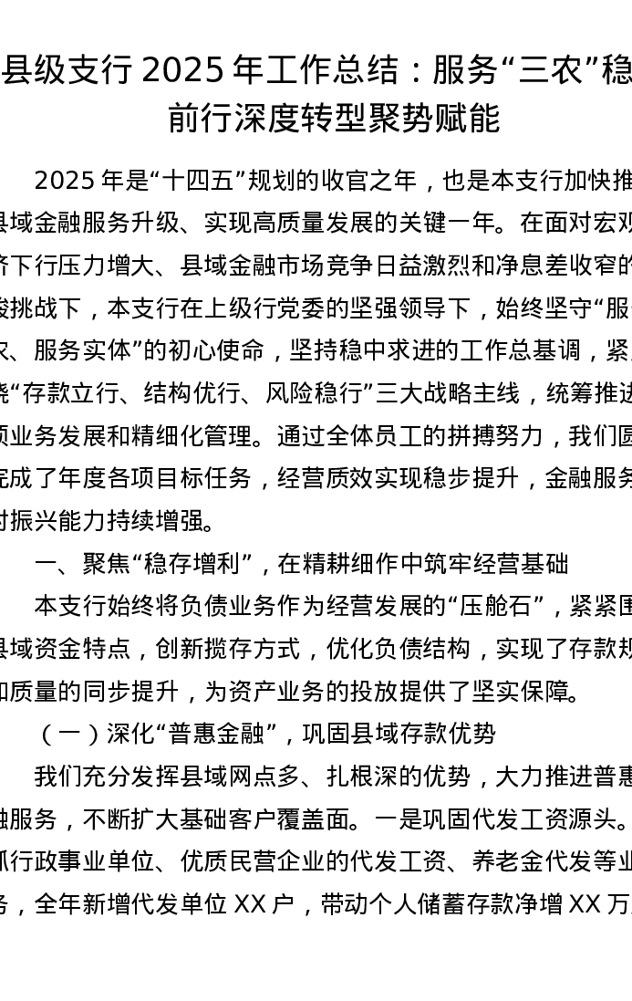 县级支行2025年工作总结:服务“三农”稳健前行 深度转型聚势赋能