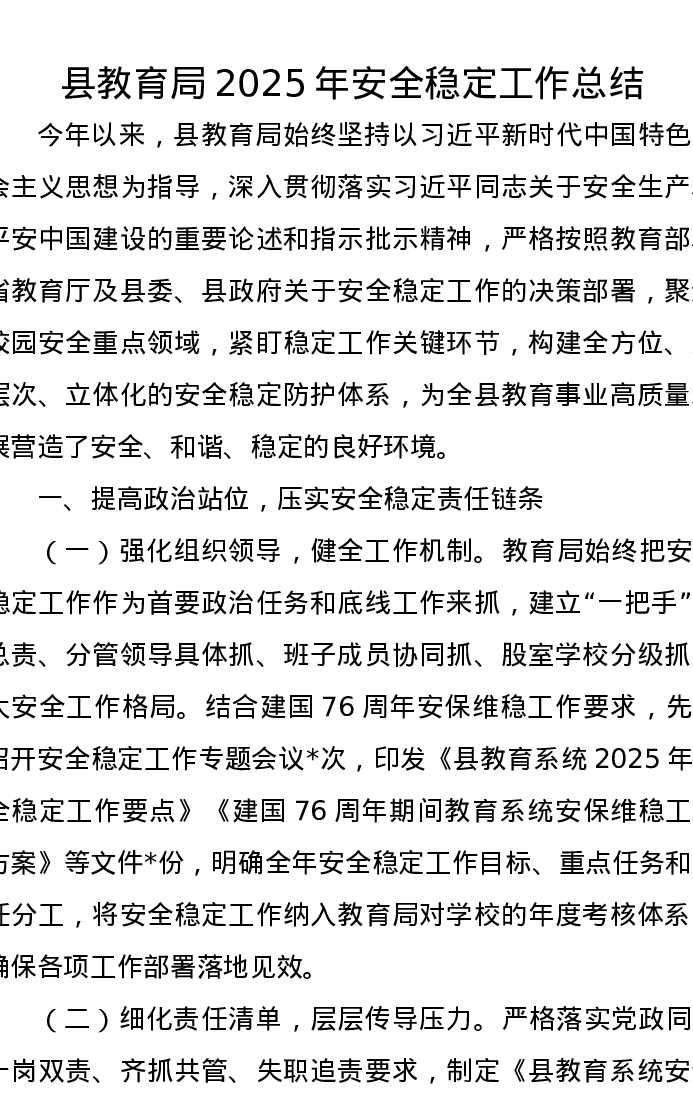 县教育局2025年安全稳定工作总结