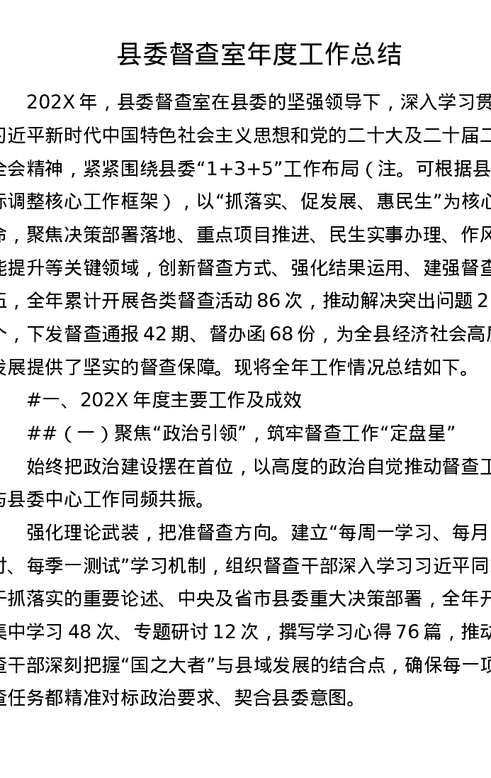县委督查室年度工作总结(4974字)
