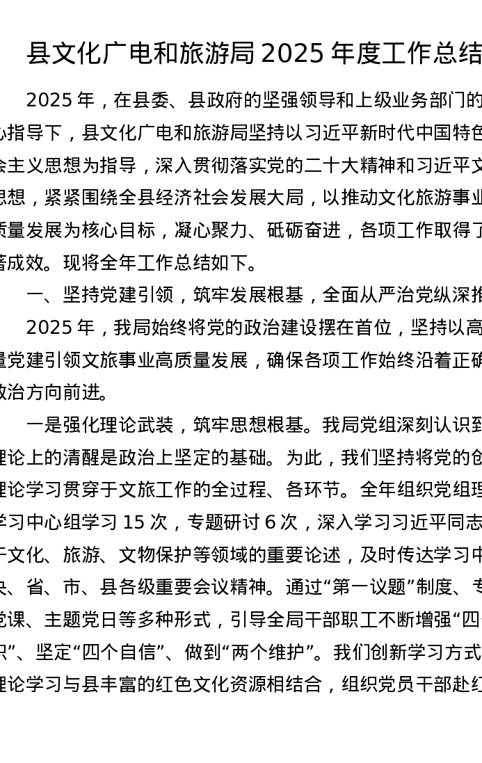 县文化广电和旅游局2025年度工作总结