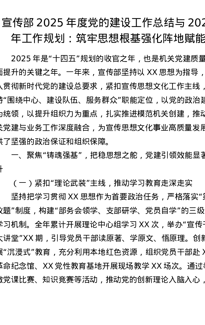 宣传部2025年度党的建设工作总结与2026年工作规划:筑牢思想根基 强化阵地赋能