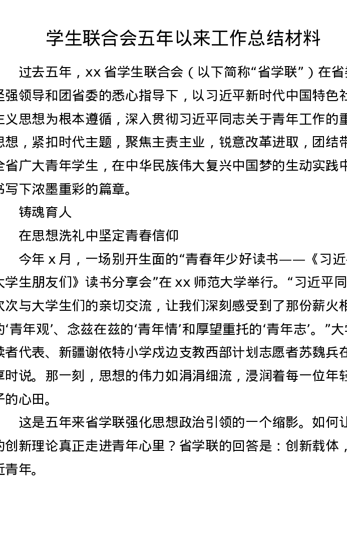 学生联合会五年以来工作总结材料