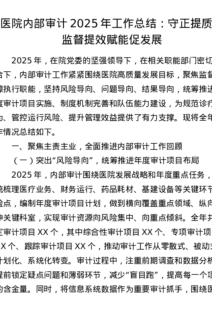 医院内部审计2025年工作总结:守正提质强监督 提效赋能促发展