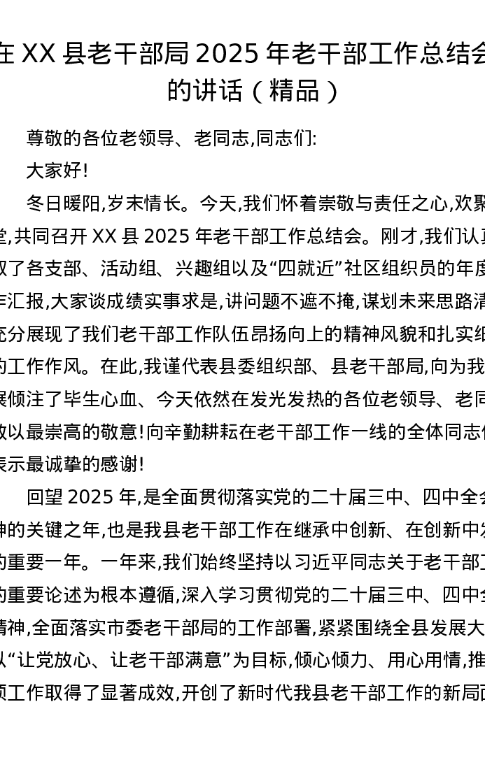 在XX县老干部局2025年老干部工作总结会上的讲话