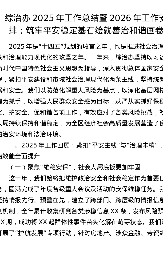 综治办2025年工作总结暨2026年工作安排:筑牢平安稳定基石 绘就善治和谐画卷