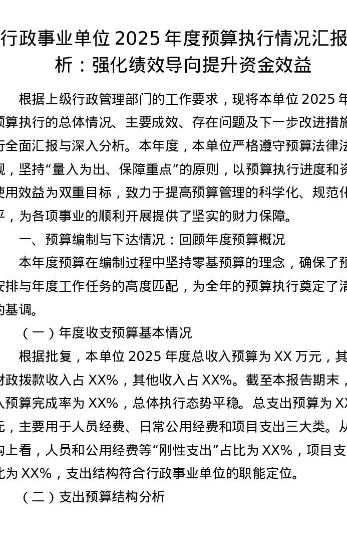 行政事业单位2025年度预算执行情况汇报分析:强化绩效导向 提升资金效益