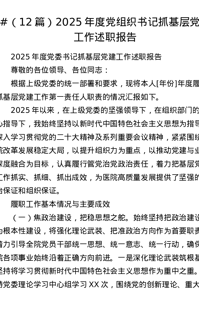 汇编:2025年度党组织书记抓基层党建工作述职报告12篇