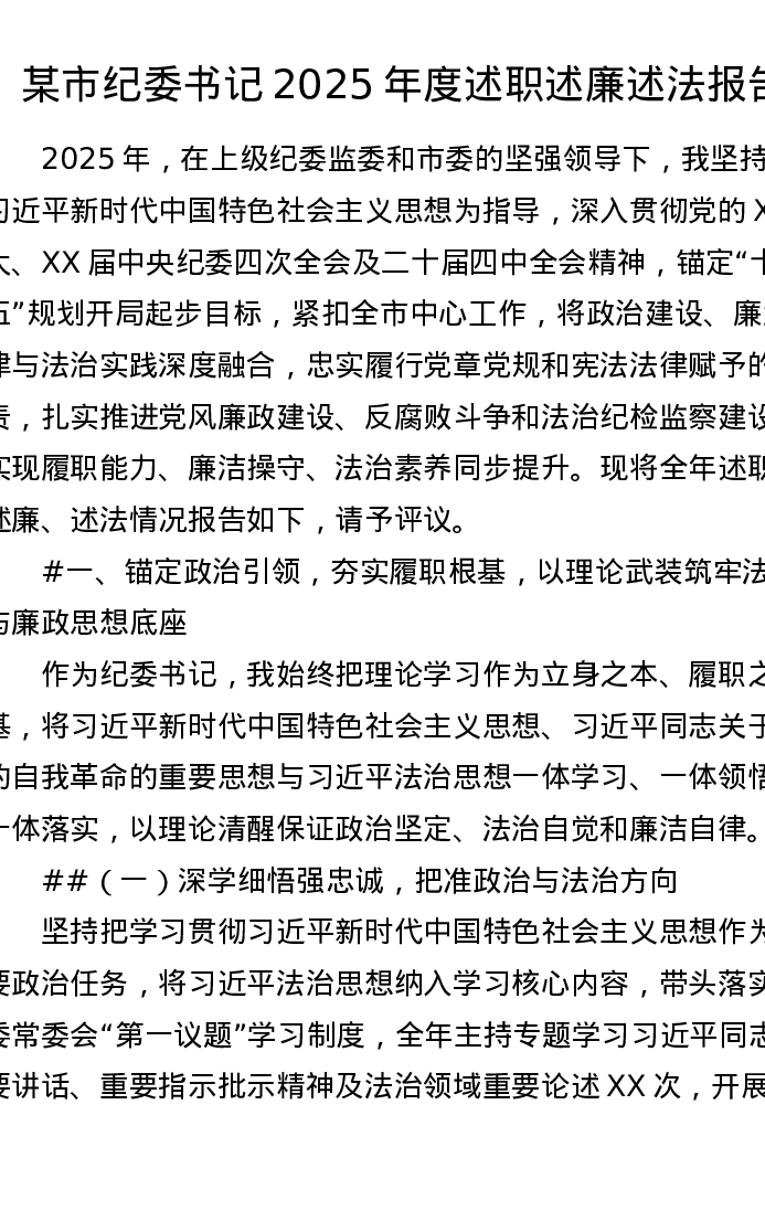 某市纪委书记2025年度述职述廉述法报告(5632字)