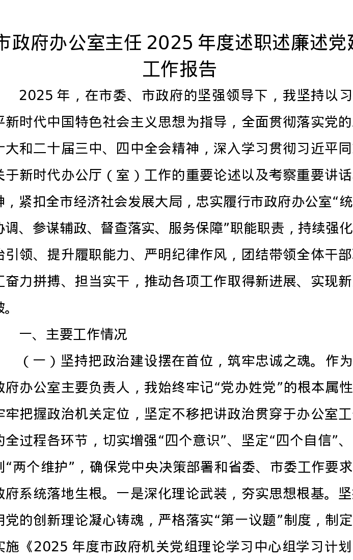 市政府办公室主任2025年度述职述廉述党建工作报告