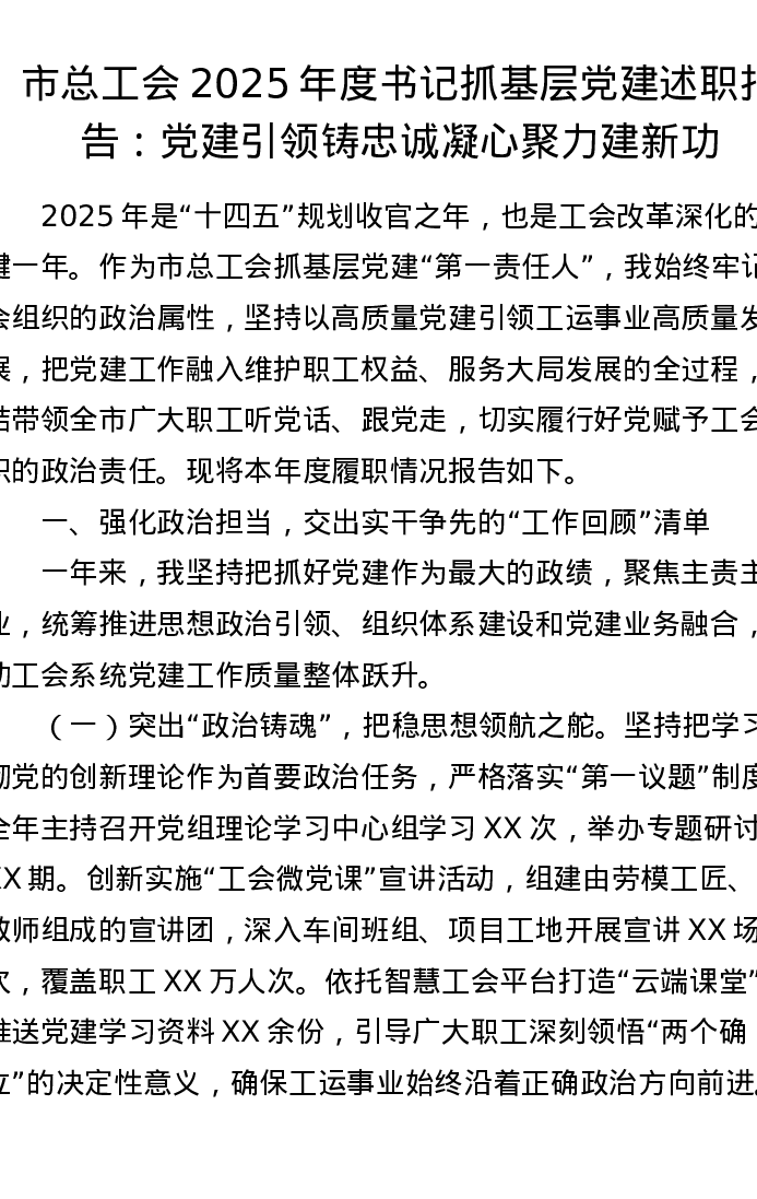 市总工会2025年度书记抓基层党建述职报告:党建引领铸忠诚 凝心聚力建新功