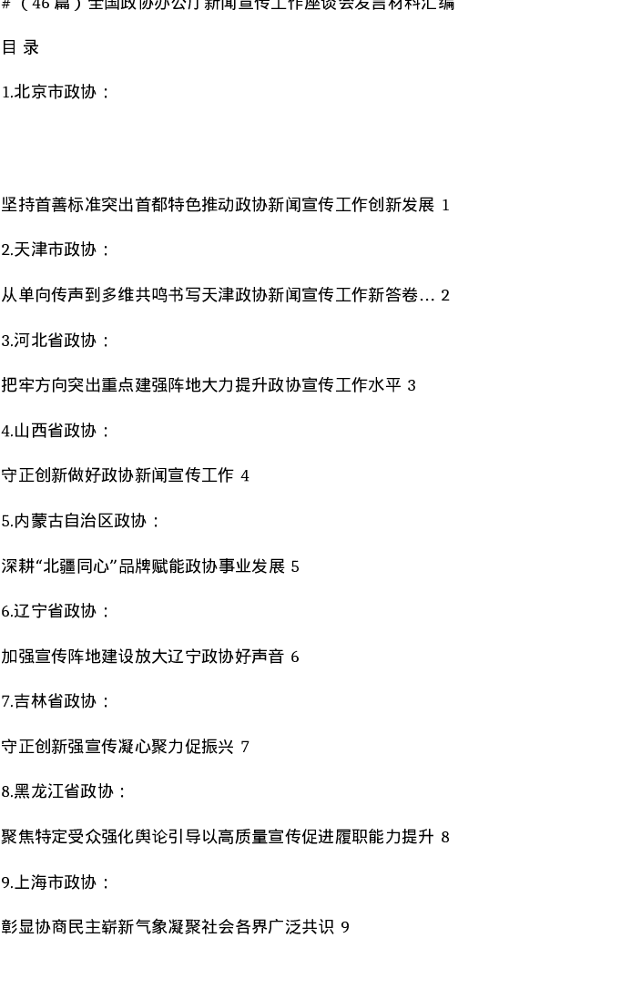 汇编:46篇全国政协办公厅新闻宣传工作座谈会发言材料汇编
