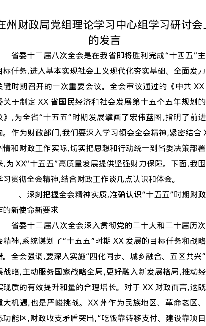 在州财政局党组理论学习中心组学习研讨会上的发言