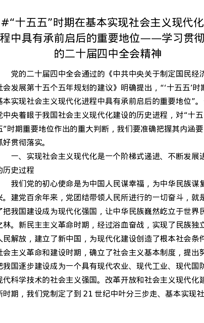 “十五五”时期在基本实现社会主义现代化进程中具有承前启后的重要地位——学习贯彻党的二十届四中全会精神