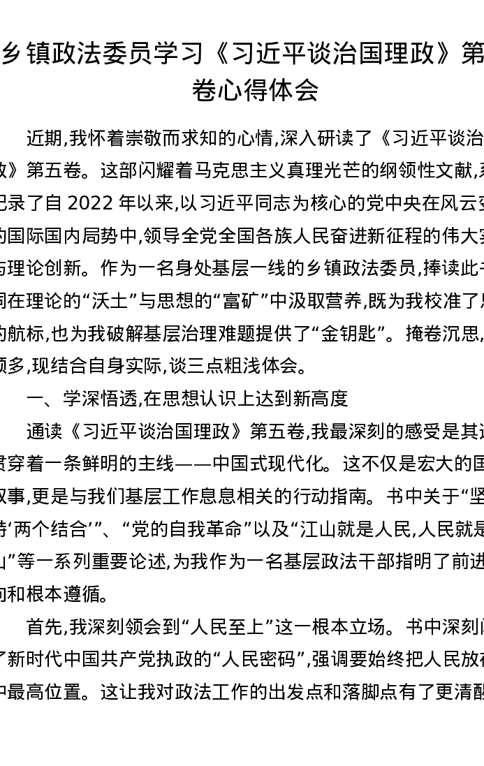 乡镇政法委员学习《习近平谈治国理政》第五卷心得体会
