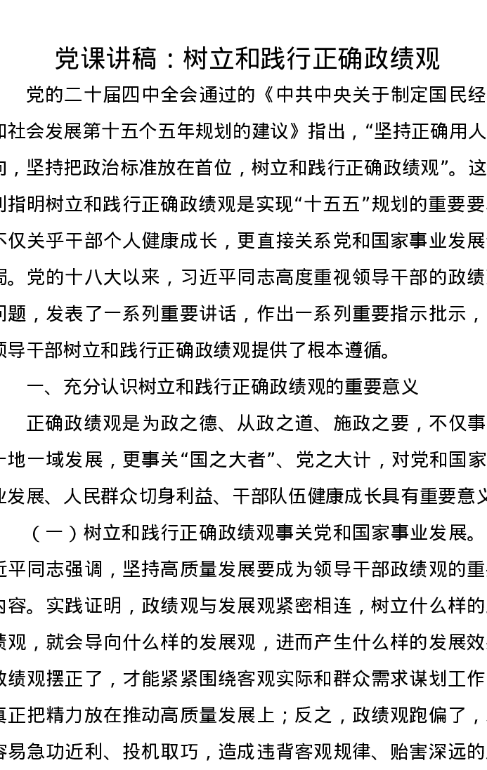 党课讲稿:树立和践行正确政绩观