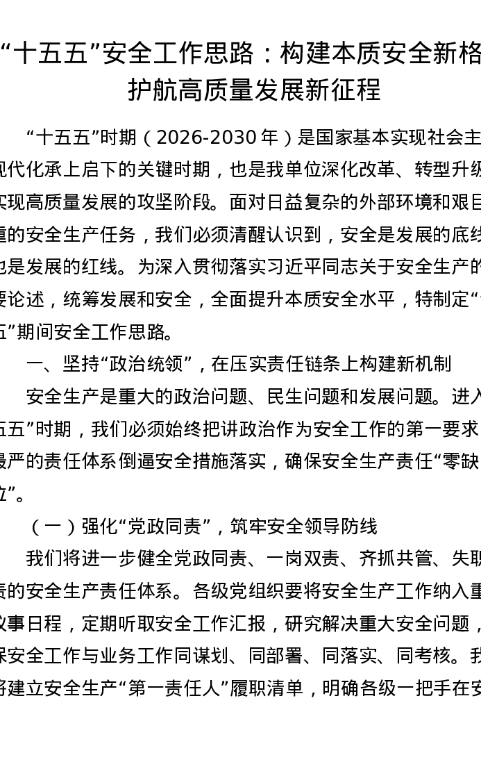 “十五五”安全工作思路:构建本质安全新格局 护航高质量发展新征程