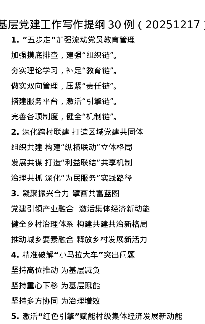 基层党建工作写作提纲30例(20251217)