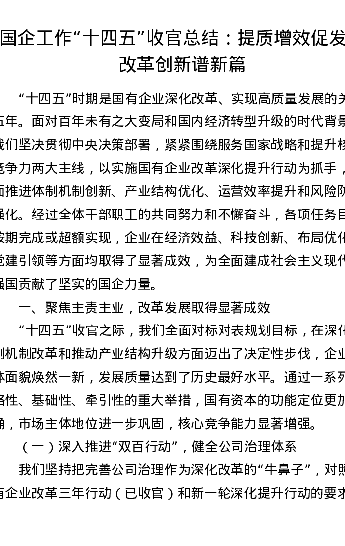 国企工作“十四五”收官总结:提质增效促发展 改革创新谱新篇
