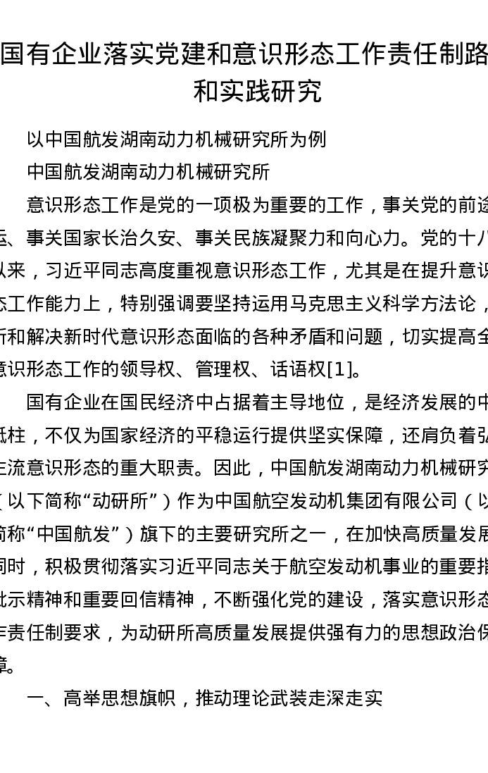 调研报告:国有企业落实党建和意识形态工作责任制路径和实践研究