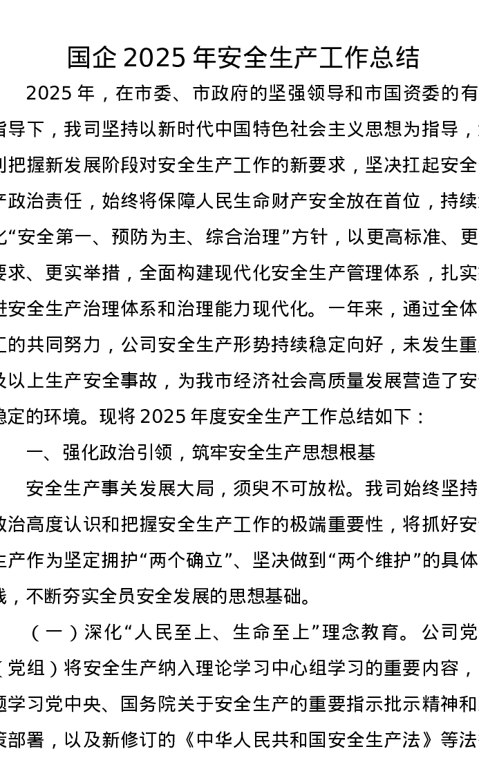 国企2025年安全生产工作总结