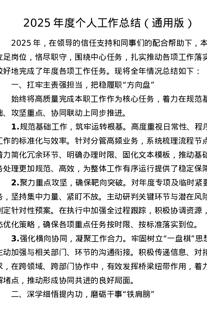 2025年度个人工作总结(通用版)