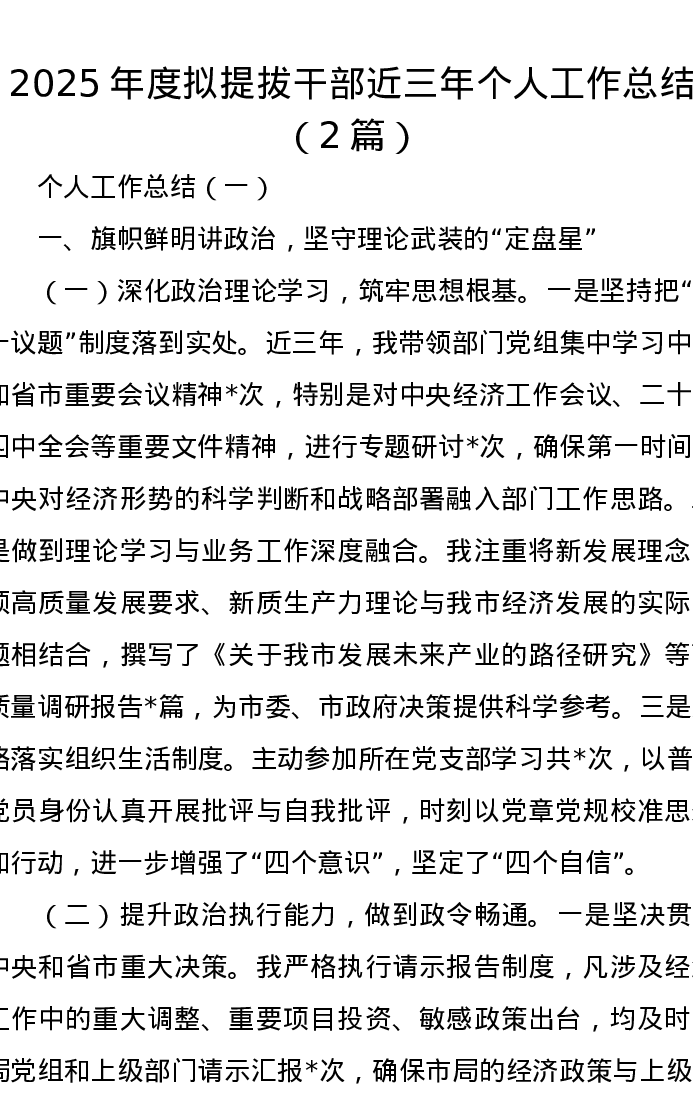 2025年度拟提拔干部近三年个人工作总结(2篇)