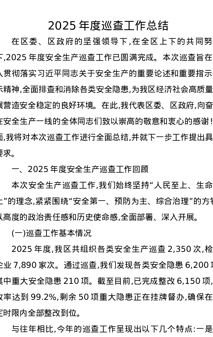 2025年度巡查工作总结