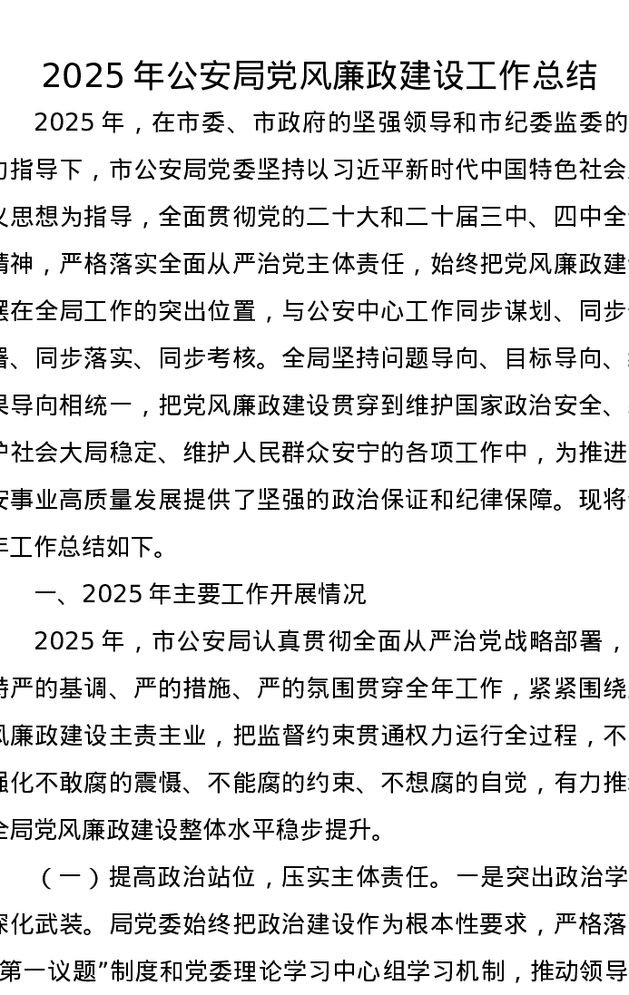 2025年公安局党风廉政建设工作总结
