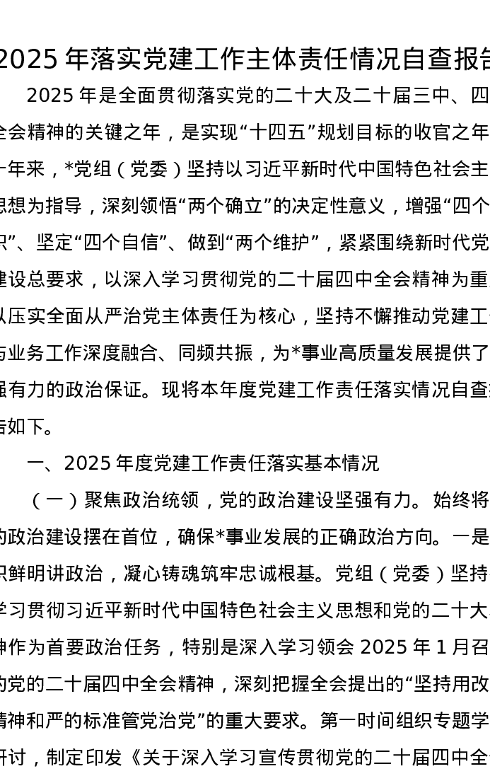 2025年落实党建工作主体责任情况自查报告