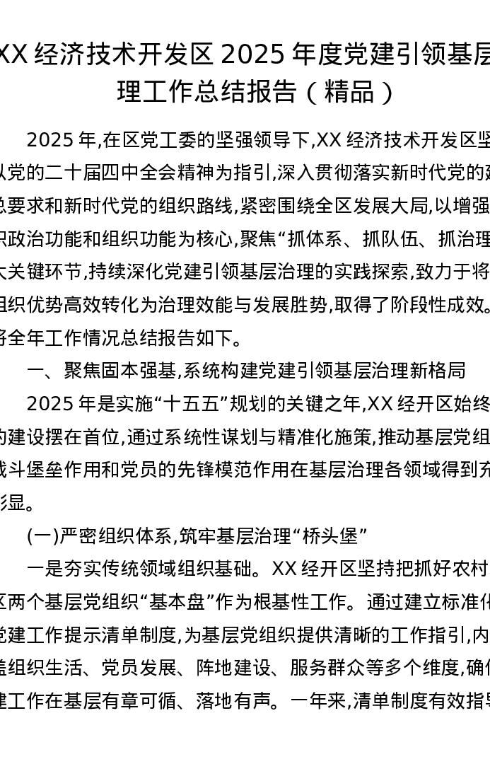XX经济技术开发区2025年度党建引领基层治理工作总结报告