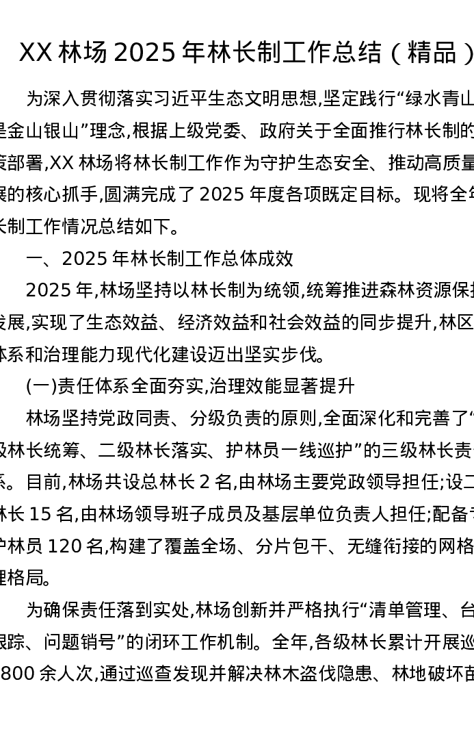 XX林场2025年林长制工作总结