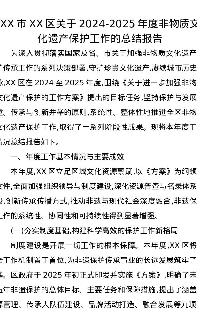 XX市XX区关于2024-2025年度非物质文化遗产保护工作的总结报告