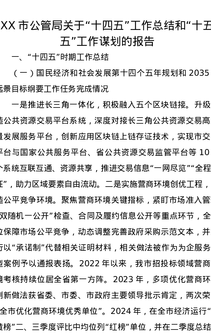 XX市公管局关于十四五工作总结和十五五工作谋划的报告