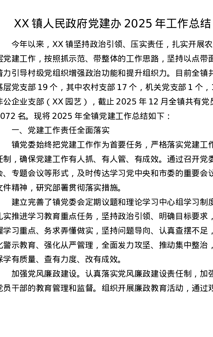XX镇人民政府党建办2025年工作总结