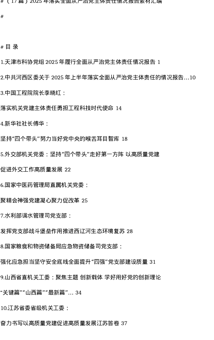 汇编:2025年落实全面从严治党主体责任情况报告素材17篇