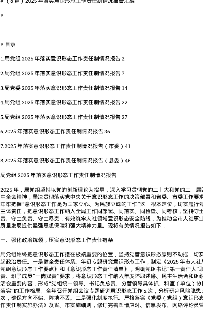 汇编:2025年落实意识形态工作责任制情况报告8篇