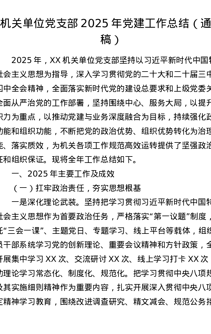 机关单位党支部2025年党建工作总结(通用稿)