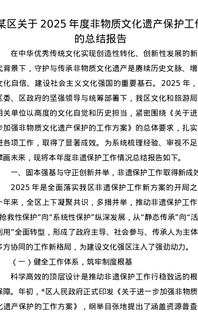 某区关于2025年度非物质文化遗产保护工作的总结报告