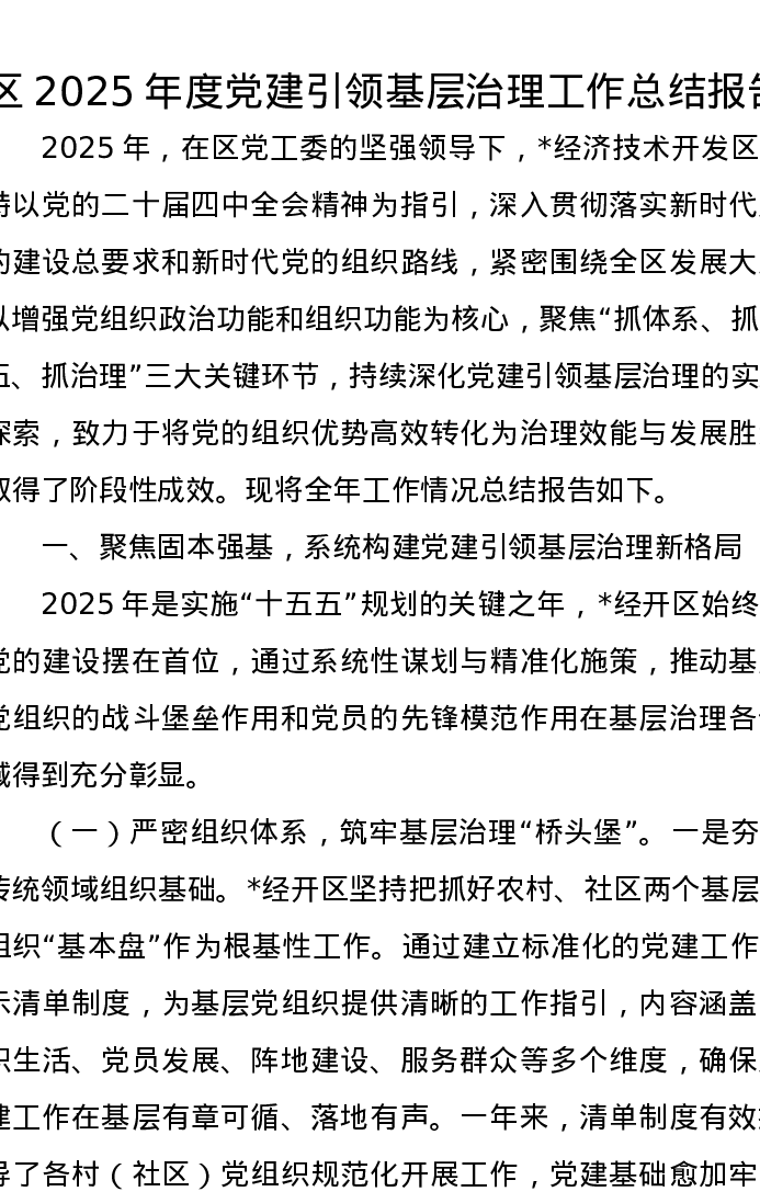 区2025年度党建引领基层治理工作总结报告