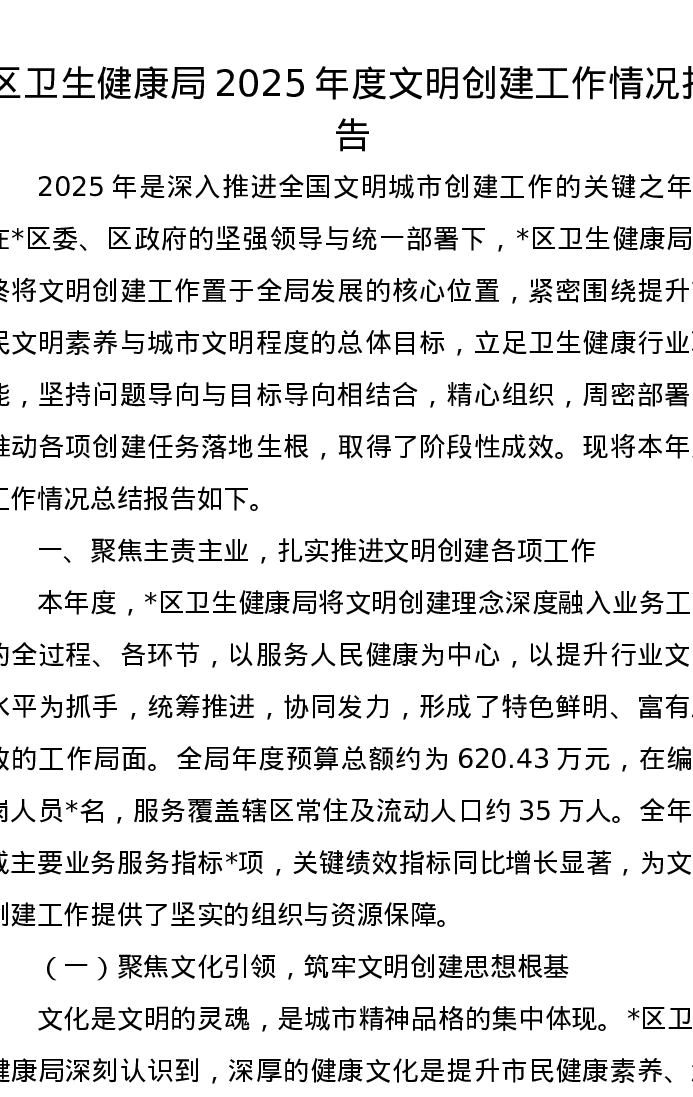 区卫生健康局2025年度文明创建工作情况报告