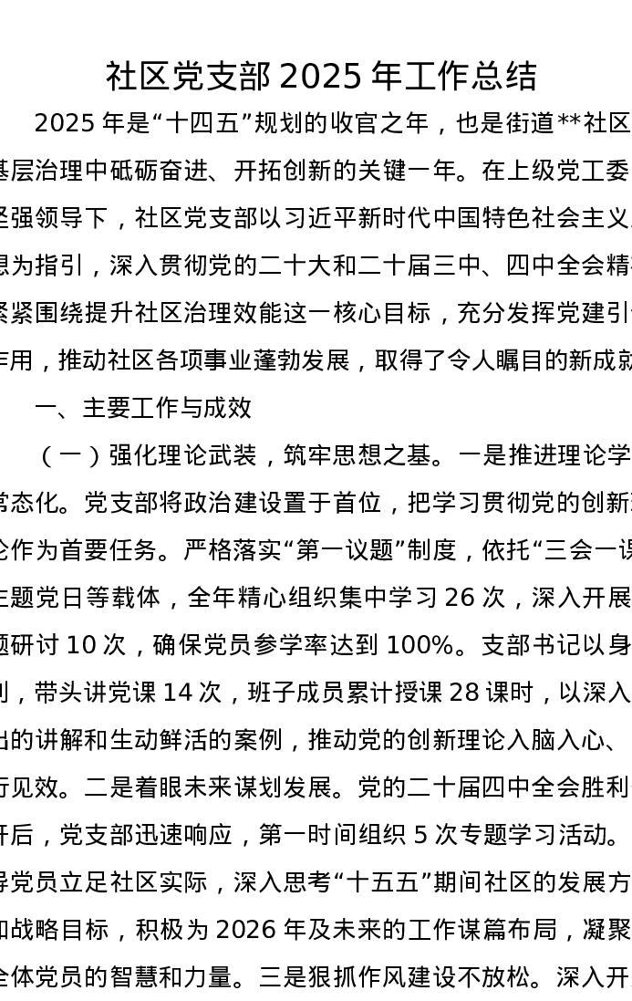 社区党支部2025年工作总结