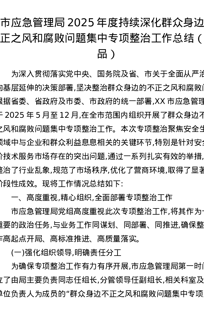 市应急管理局2025年度持续深化群众身边不正之风和腐败问题集中专项整治工作总结