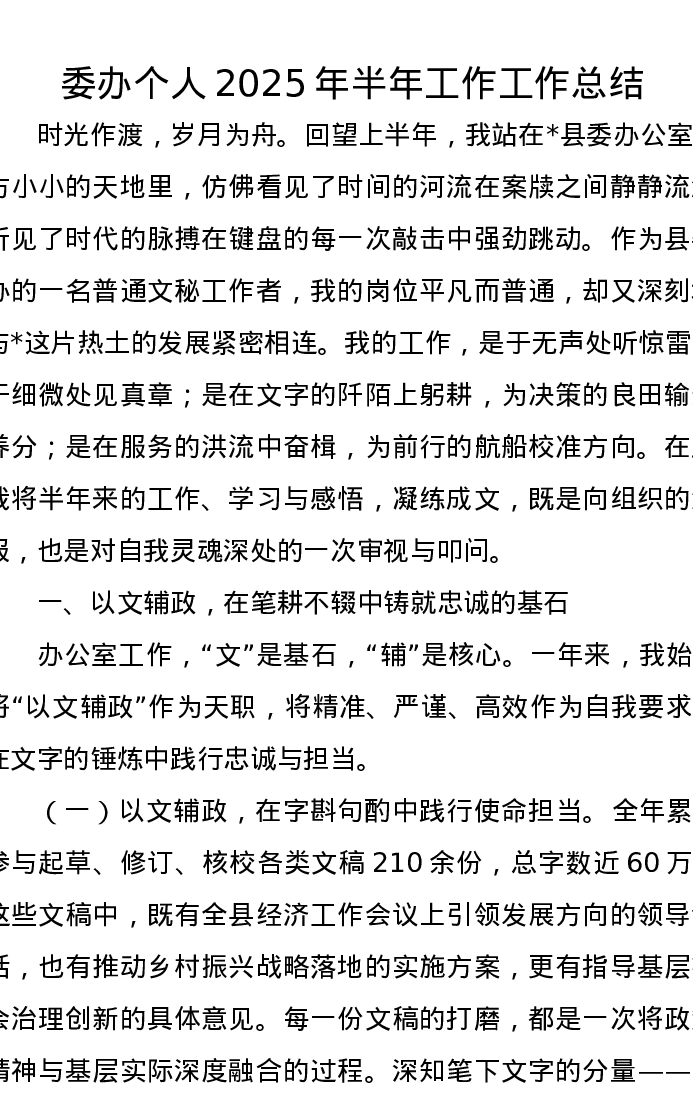 委办个人2025年半年工作工作总结