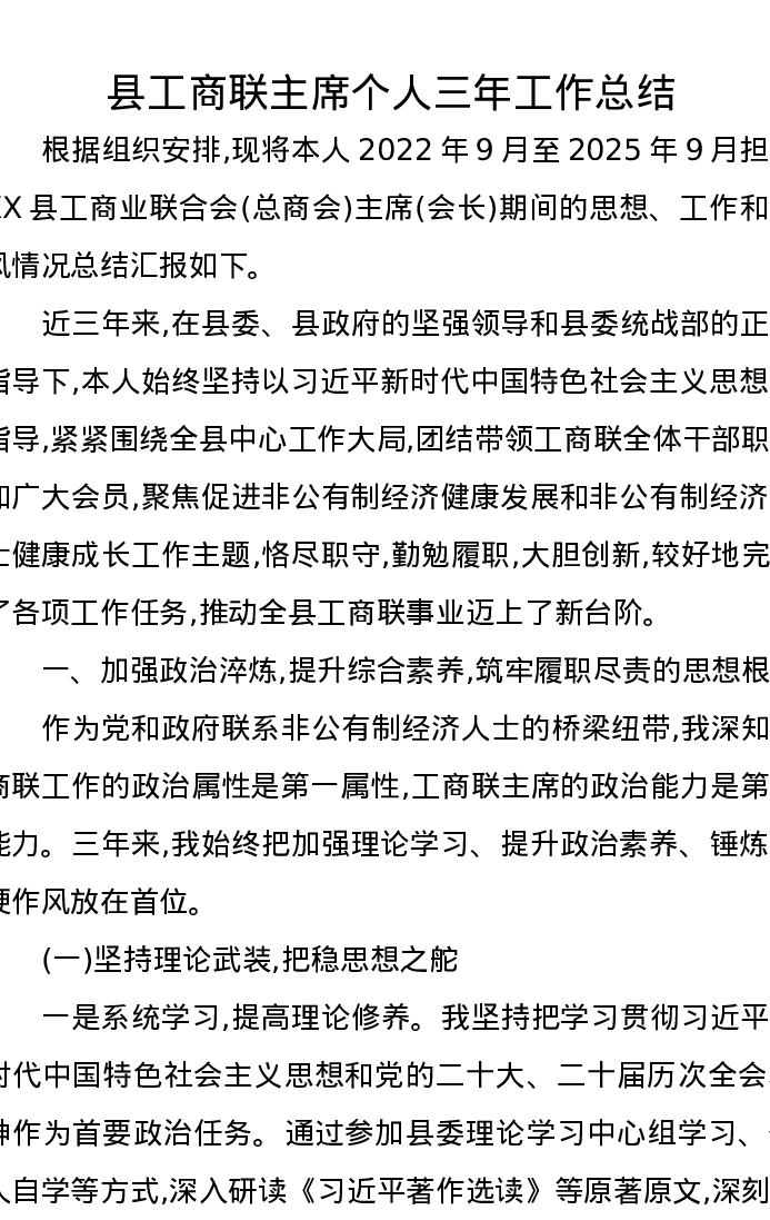 县工商联主席个人三年工作总结