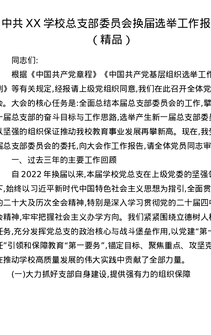中共XX学校总支部委员会换届选举工作报告