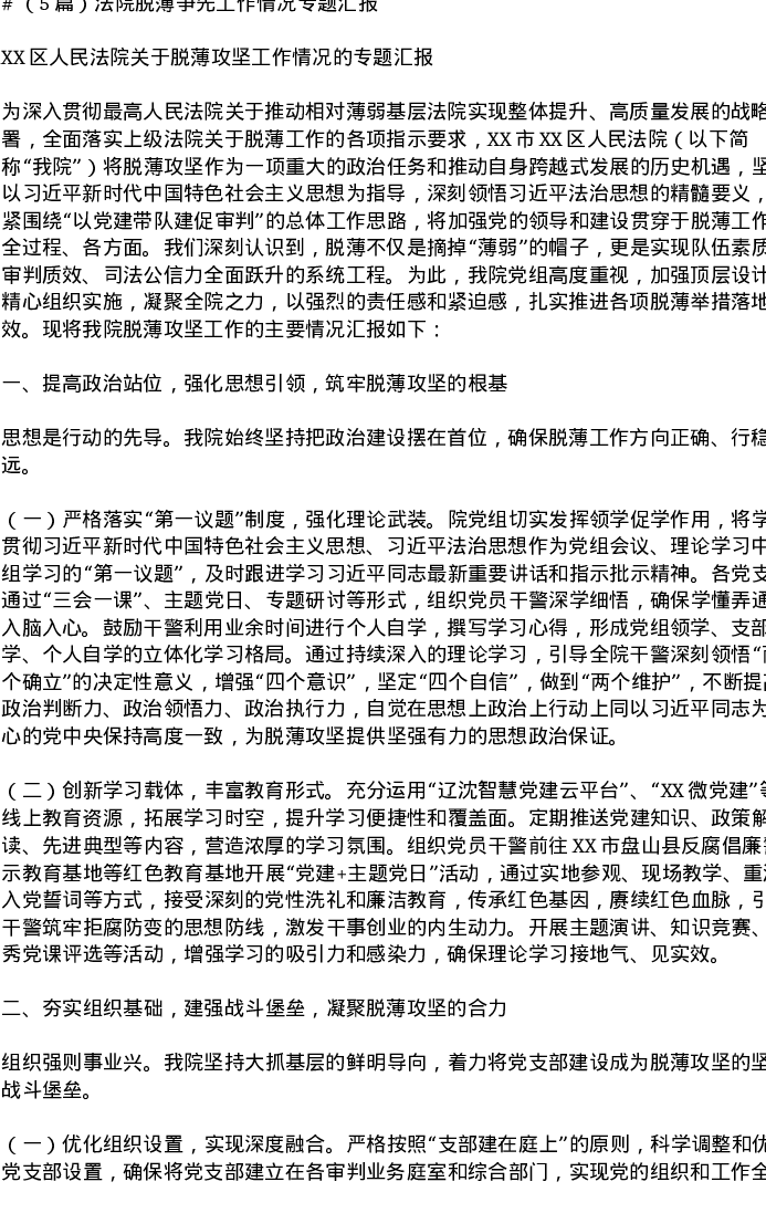 汇编:法院脱薄争先工作情况专题汇报5篇